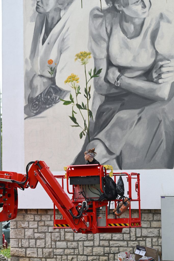 Reportage photo lors de la création de l’œuvre de Rouge Hartley, en hommage à LIP. Besançon 2024